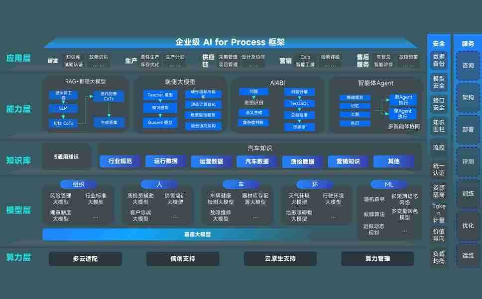 端到端的一站式AI工作空间深度融合了从企业战略规划到日常经营的全流程业务板块,,,,定向解决车企内部领域多、、、、部门多、、链条长、、、、场景碎片化等难题,,,支持车企快速构建以AI为核心的生产力写作体系,,,,实现任务执行与AI能力的无缝集成与交互